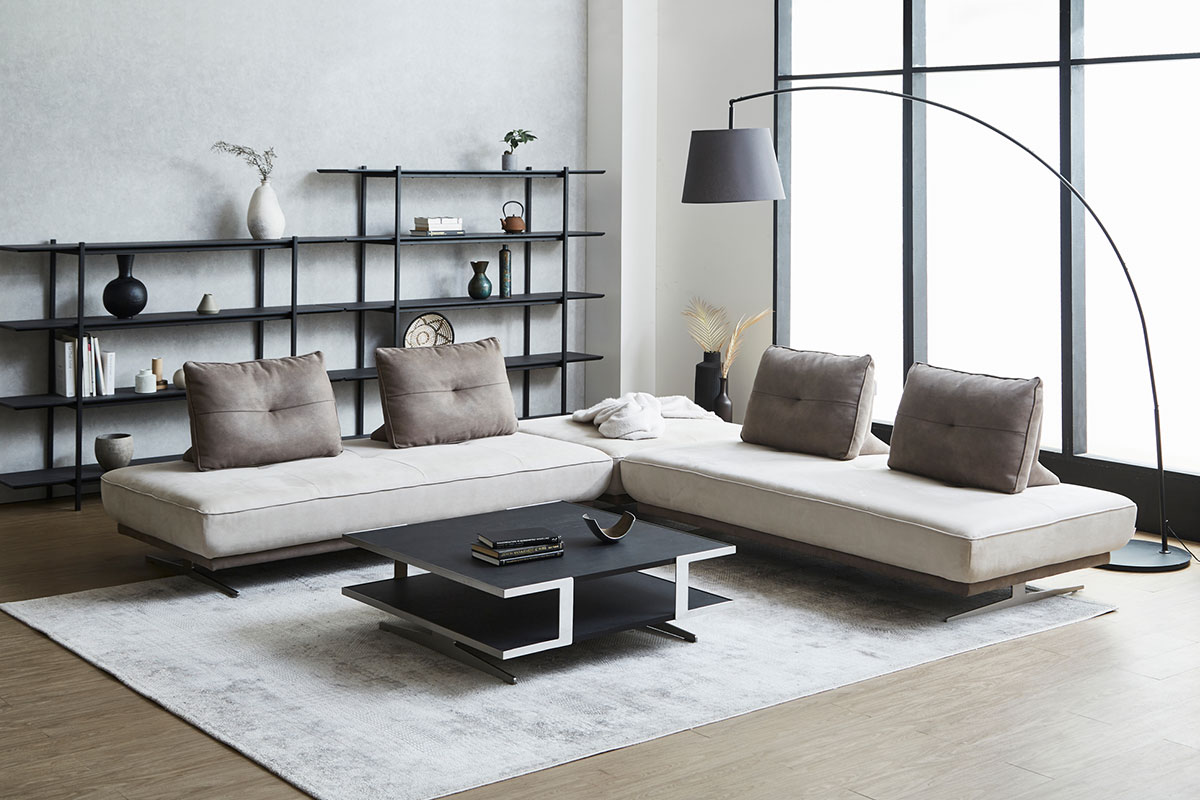 デイベッドタイプのベースに、置き型の背クッションを合わせて自由に寛げるアイランドソファ