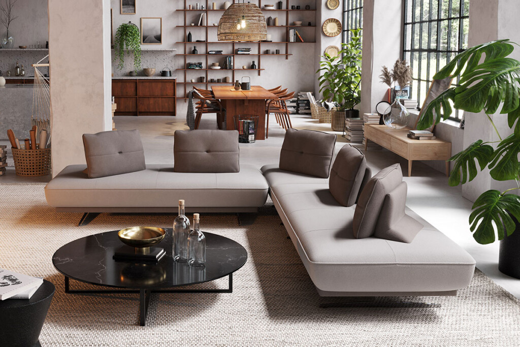 デイベッドタイプのベースに、置き型の背クッションを合わせて自由に寛げるアイランドソファ