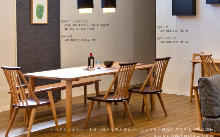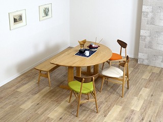 オーク材のテーブルとカバーリングチェアの組み合わせ